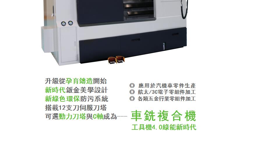 模组化选择刀塔系统:搭載12支刀伺服刀塔,可選動力刀塔與C軸成為---车铣复合机。
